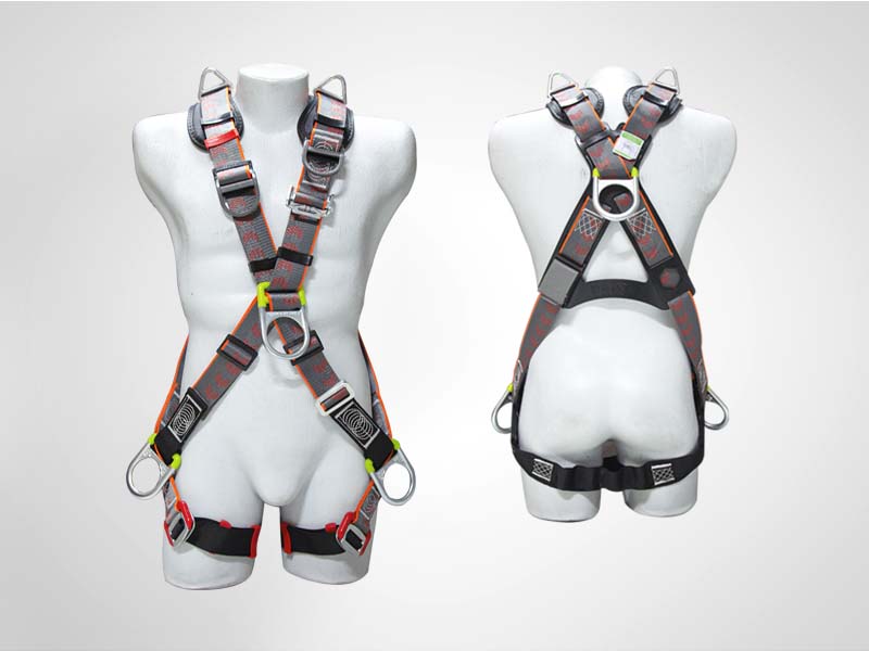 Arnés multipropósito de seis puntos de anclaje en X, dos en los hombros para rescate en espacios confinados, fabricado en reatas de poliéster con hebillas metálicas, especial para trabajos en tanques y todo tipo de espacio confinado.